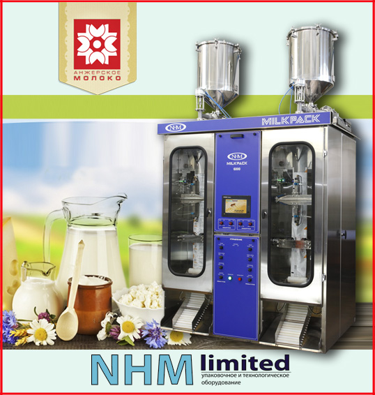 ООО «Анжерское молоко» (Кемеровская обл.) приобрело у поставщика упаковочного оборудования компании NHM Limited Limited два двухручейных автомата по розливу молочных продуктов в пленку серии МИЛКПАК-6000 с отводными конвейерами на каждый ручей.